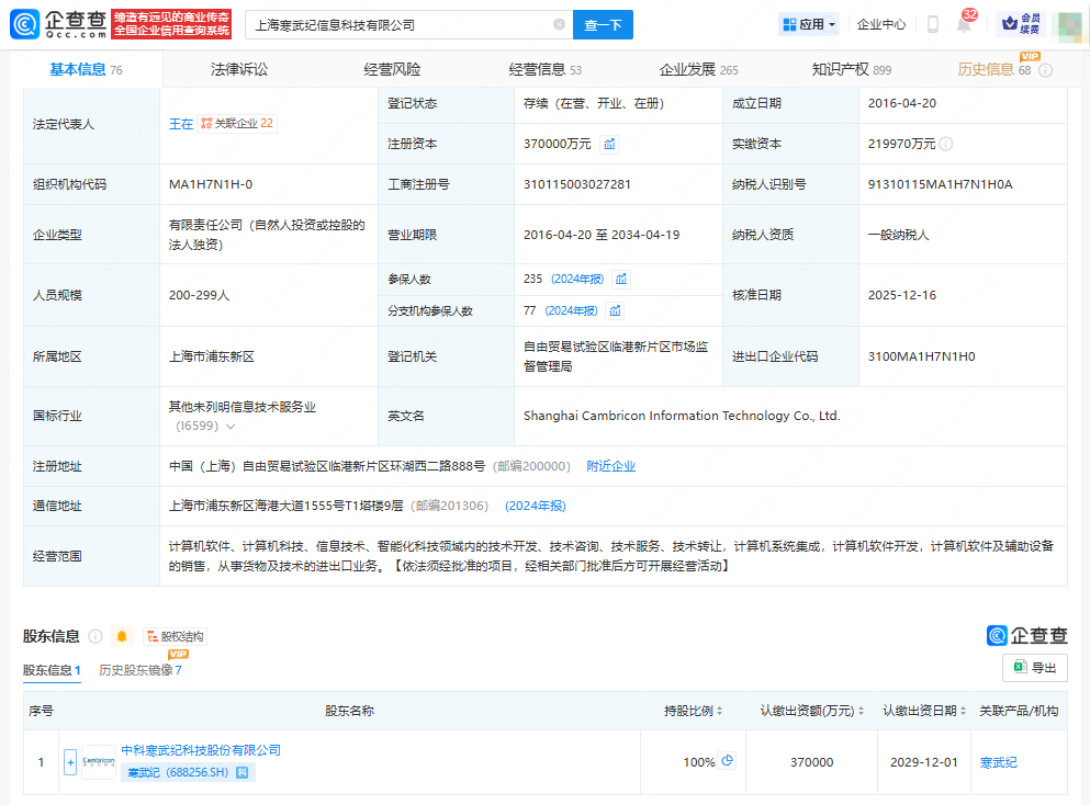 近日,上海寒武纪信息科技有限公司发生工商变更股票配资app下载排行,注册资本由27亿人民币增至37亿人民币。企查查信息显示,该公司成立于2016年4月,法定代表人为王在,经营范围涉及计算机软件、计算机科技、信息技术、智能化科技领域内的技术开发、技术咨询、技术服务、技术转让等,由寒武纪(688256)全资持股。
